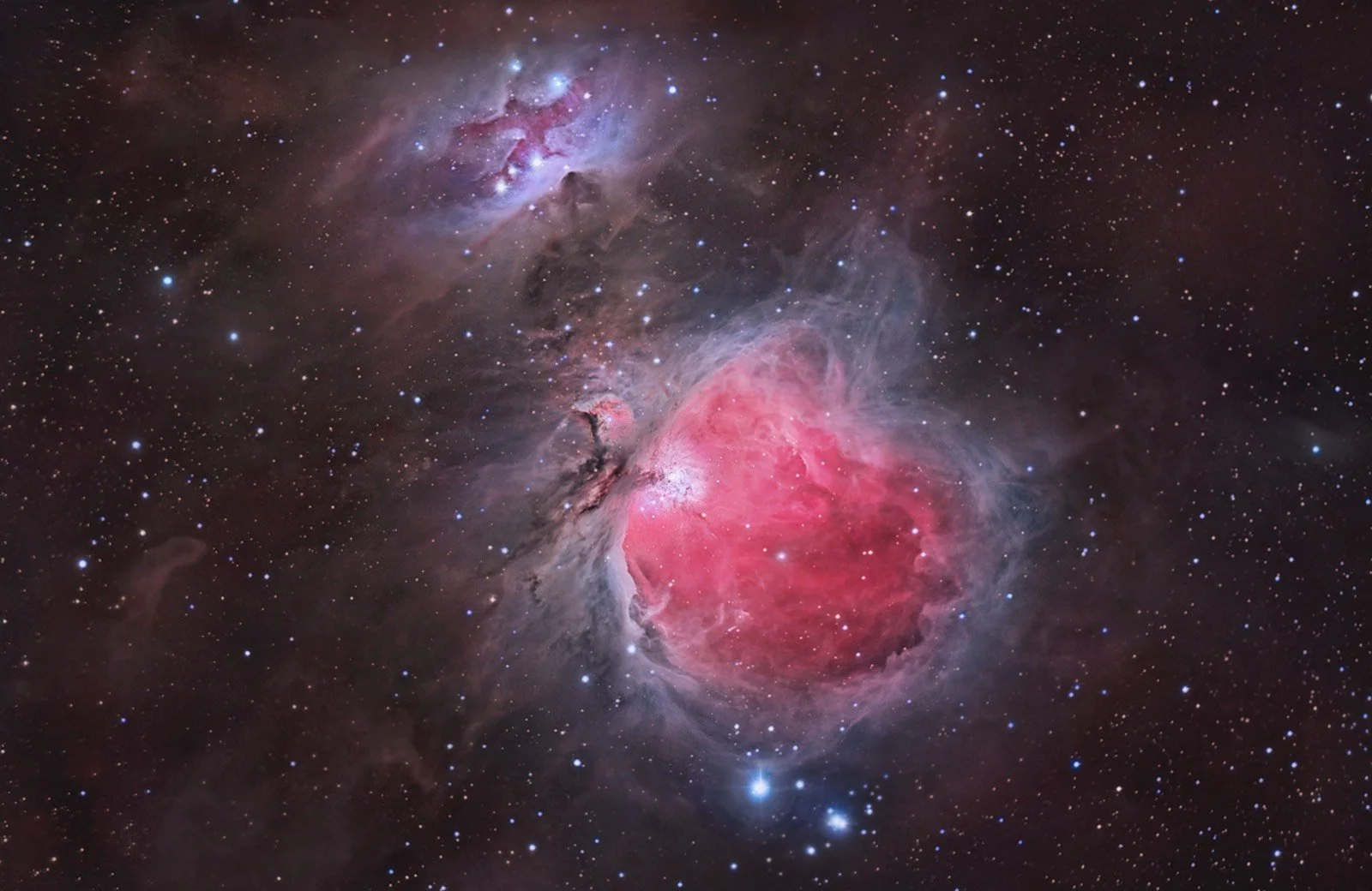 Seen to the naked eye as a fuzzy “star” in the Sword of Orion, M42 is, in fact, a great stellar nursery- a place where stars are coming to life from a cloud of mostly hydrogen gas.