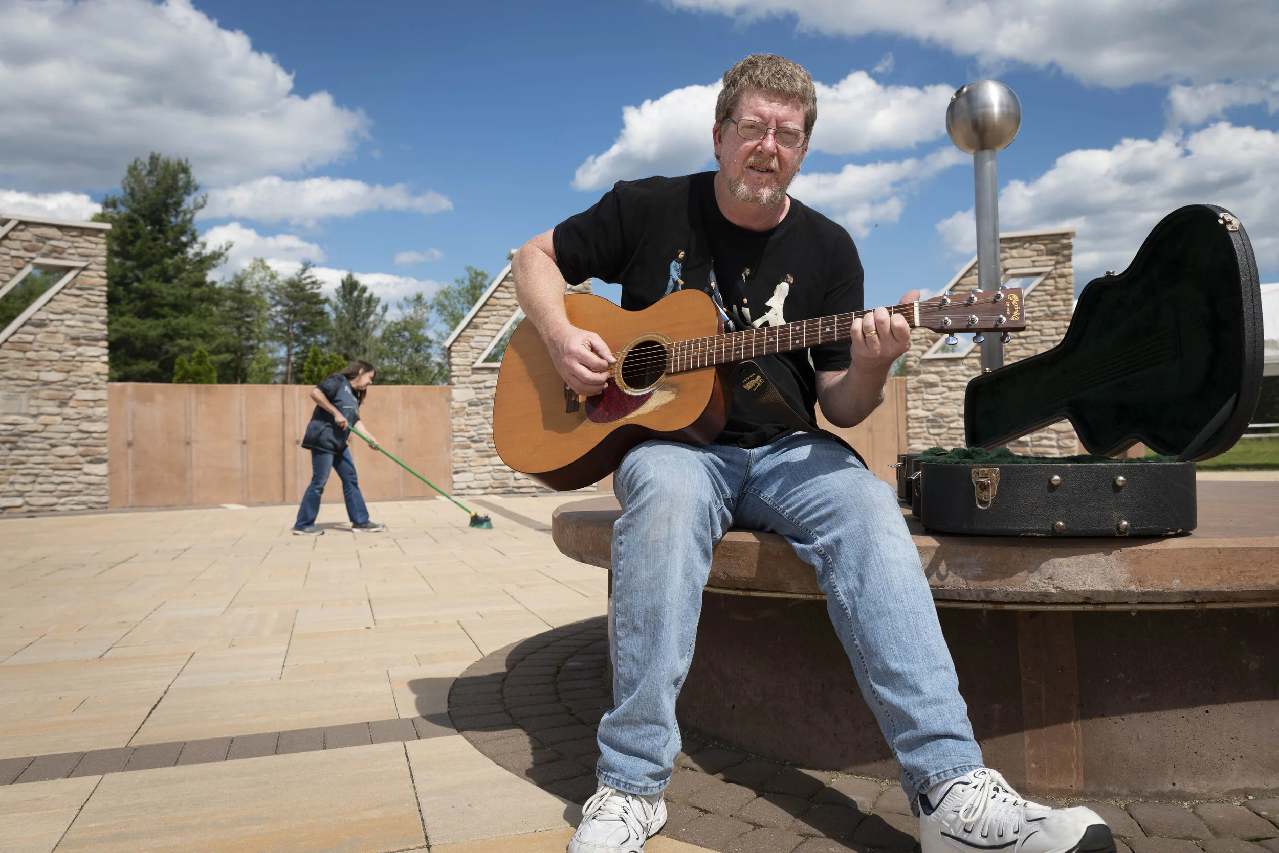 You’ll often find him at the merch table at the entrance where he loves meeting and greeting the folks who come to our programs.